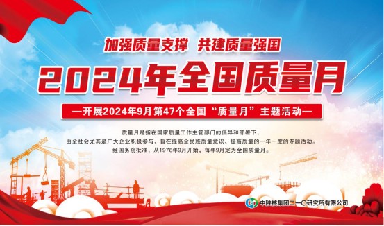 2024年9月,國家市場監管總局、中宣部等27個部門聯合開展以“加強質量支撐共建質量強國”為主題的全國“質量月”活動,二一〇研究所積極響應國家號召,深入落實“質量強國”戰略,已...